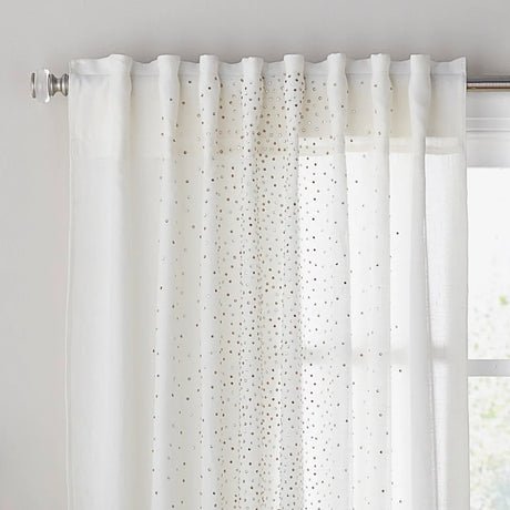 Elevate your space with our exquisite ivory linen panels, adorned with rust and silver crystals in a mesmerizing ombre pattern. The interplay of matte and shine lends a whimsical elegance to any room, casting a spell of enchantment with every glance.Overview
